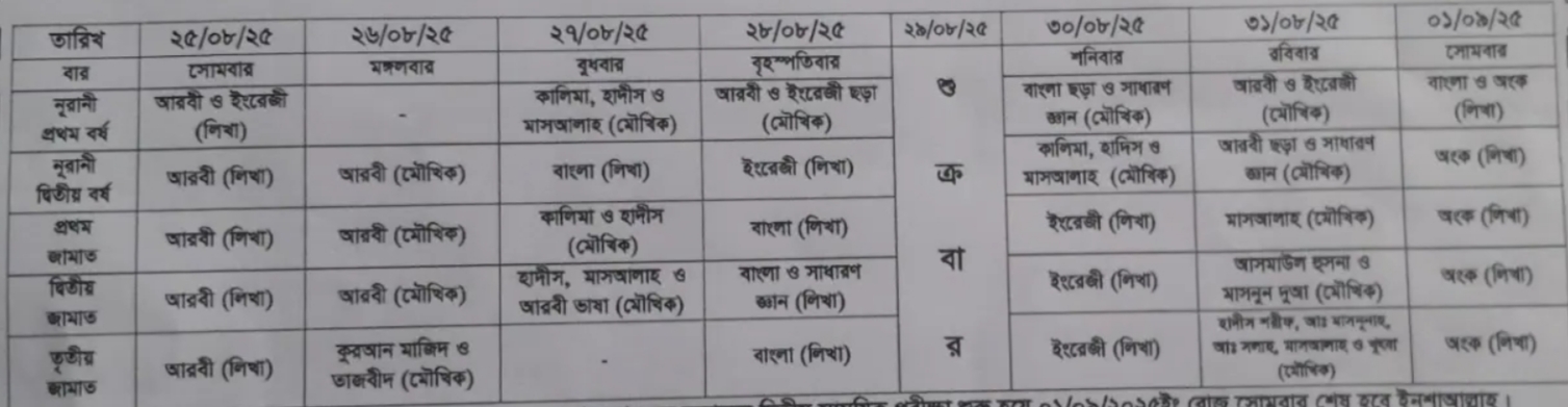 পবিত্র রমজান উপলক্ষে মাদরাসার ক্লাস রুটিন ২০২৫ |